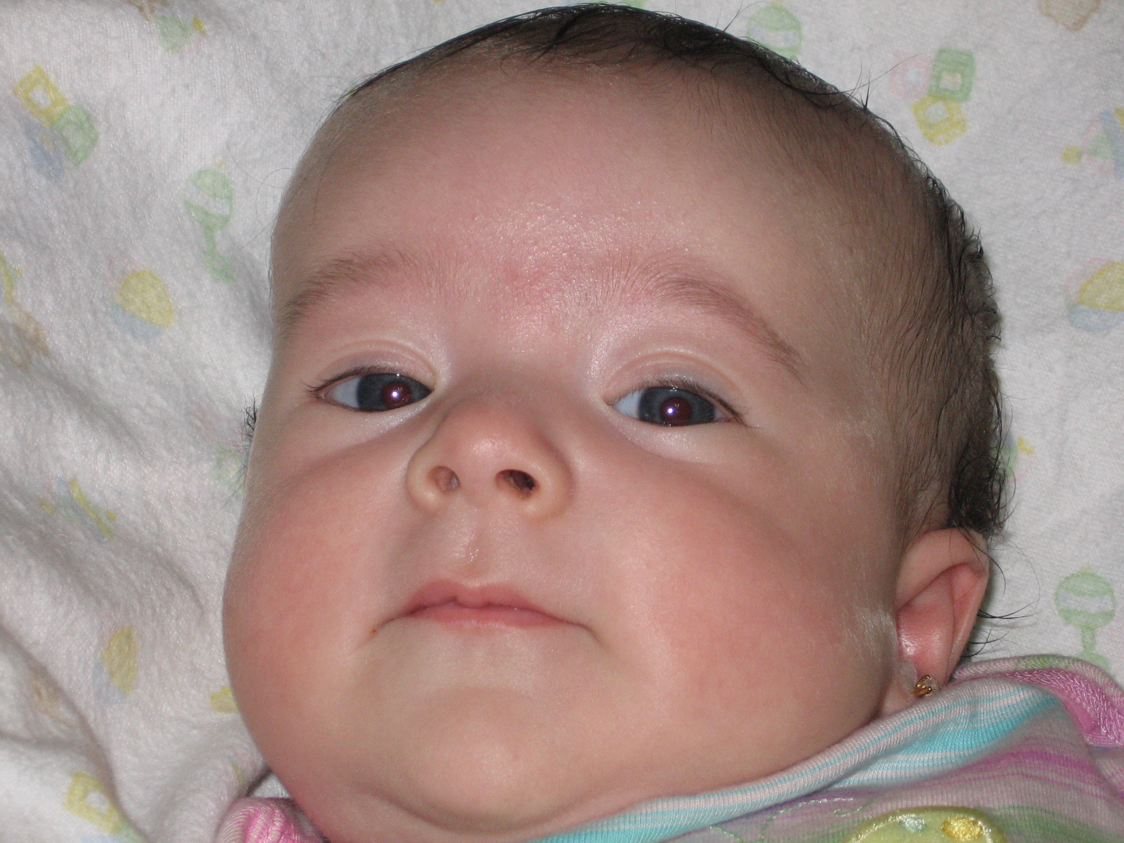 Hola. familia.....Les estamos reenviando una foto de Nathalia, quien el 28 de este mes cumplirá cuatro meses. Como se darán cuenta la bebé es un poema.......habla y escribe la abuela. Los queremos mucho. Rosalía y Freddy. chaooooooooooo ----- Original Message -----